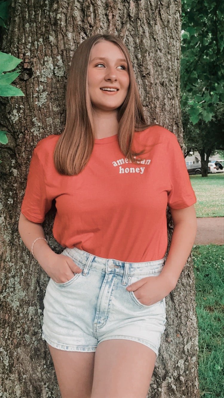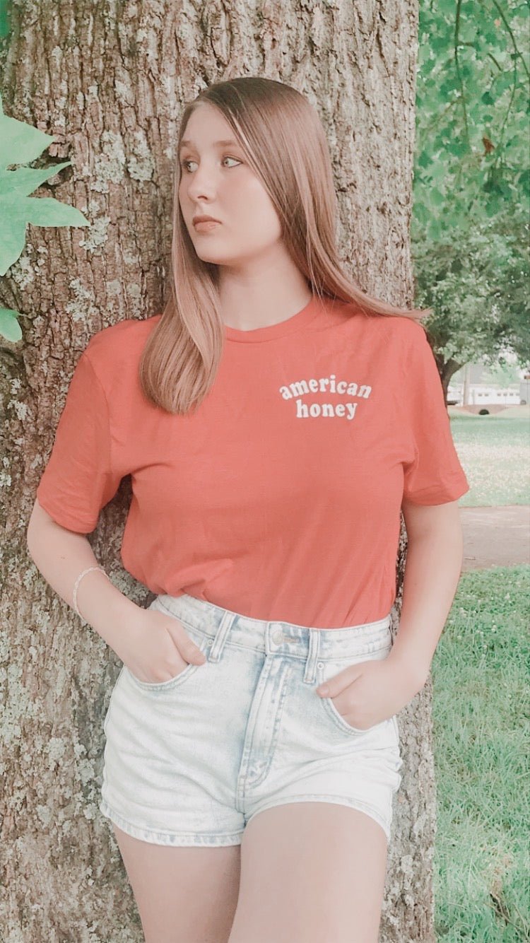 This adorable graphic tee is a must-have for this summer! This patriotic tee features a lightweight red color it's perfect for this season. We are in love with the adorable America honey design - it's so trendy! The material is lightweight and soft perfect for wearing all day long!