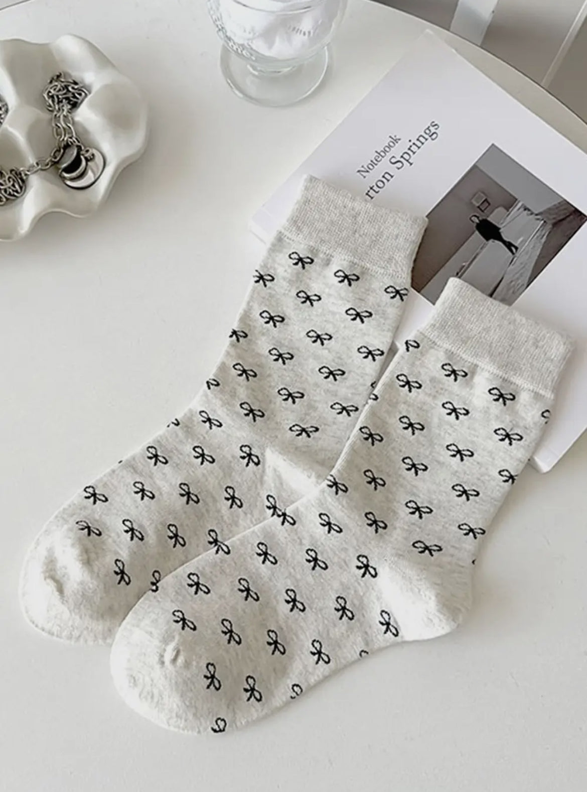 These white crew socks feature charming black bows on a ribbed edge. Made from 100% polyester, they provide both style and comfort. Perfect for any occasion, these Bow Knots Ribbed Edge Crew Socks will add a touch of elegance to any outfit.