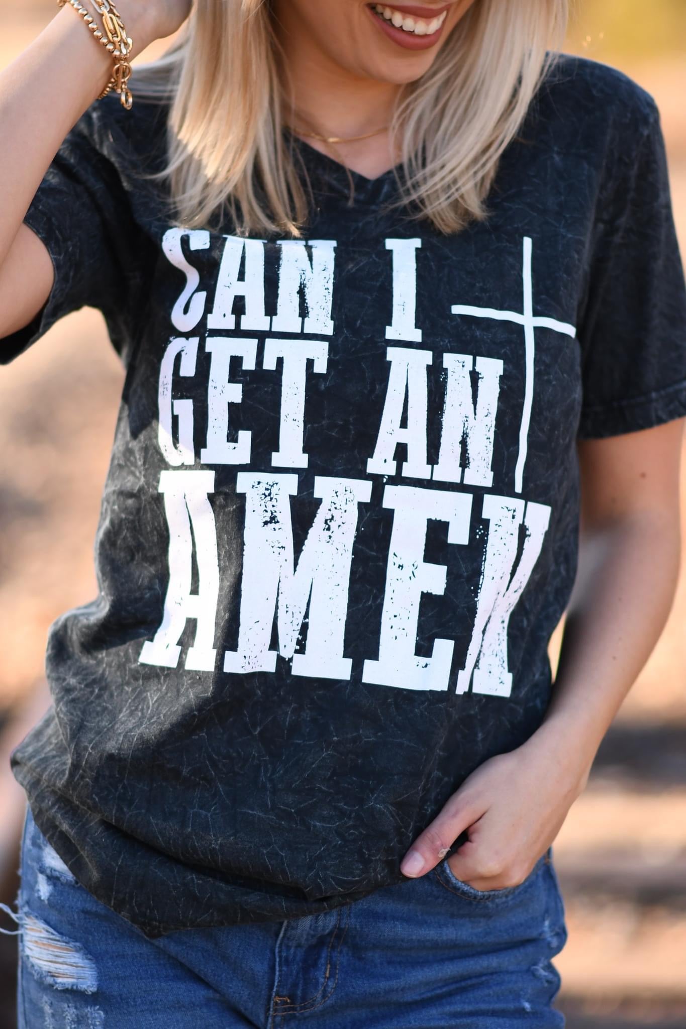 Make a bold statement without saying a word in our Can I get an Amen graphic tee. This acid washed V-neck is the perfect addition to your wardrobe. Say it loud and proud with this unique design that will surely make heads turn. Perfect tee to make a bold statement without saying a word.
