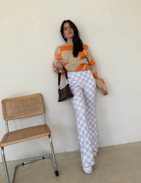 Sand checker knit flare pants.