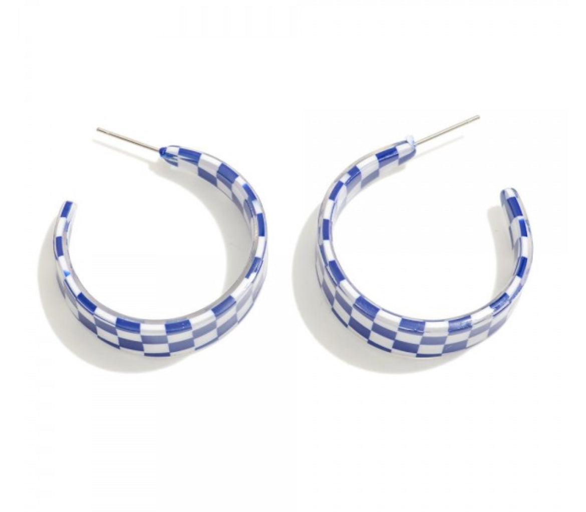Checkered Acetate Tapered Hoops-Blue