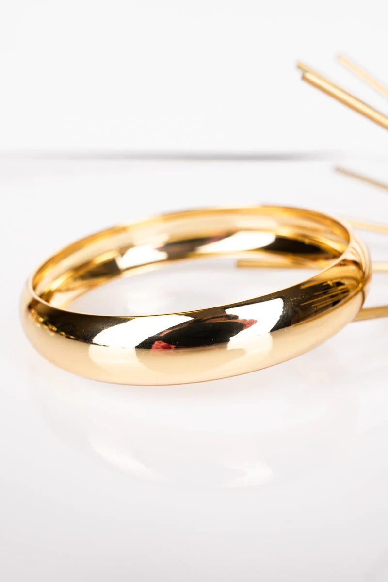 The CLARISSA GOLDTONE BRACELET is the perfect accessory to elevate any outfit. Its trendy goldtone design adds a touch of sophistication and measures .75" wide with an 8.25" inside circumference. With no closure and being lead compliant, this bracelet is both stylish and safe.