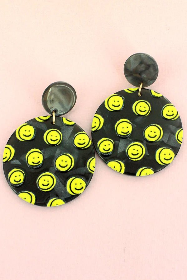 C'MON GET HAPPY BLACK DISK EARRINGS