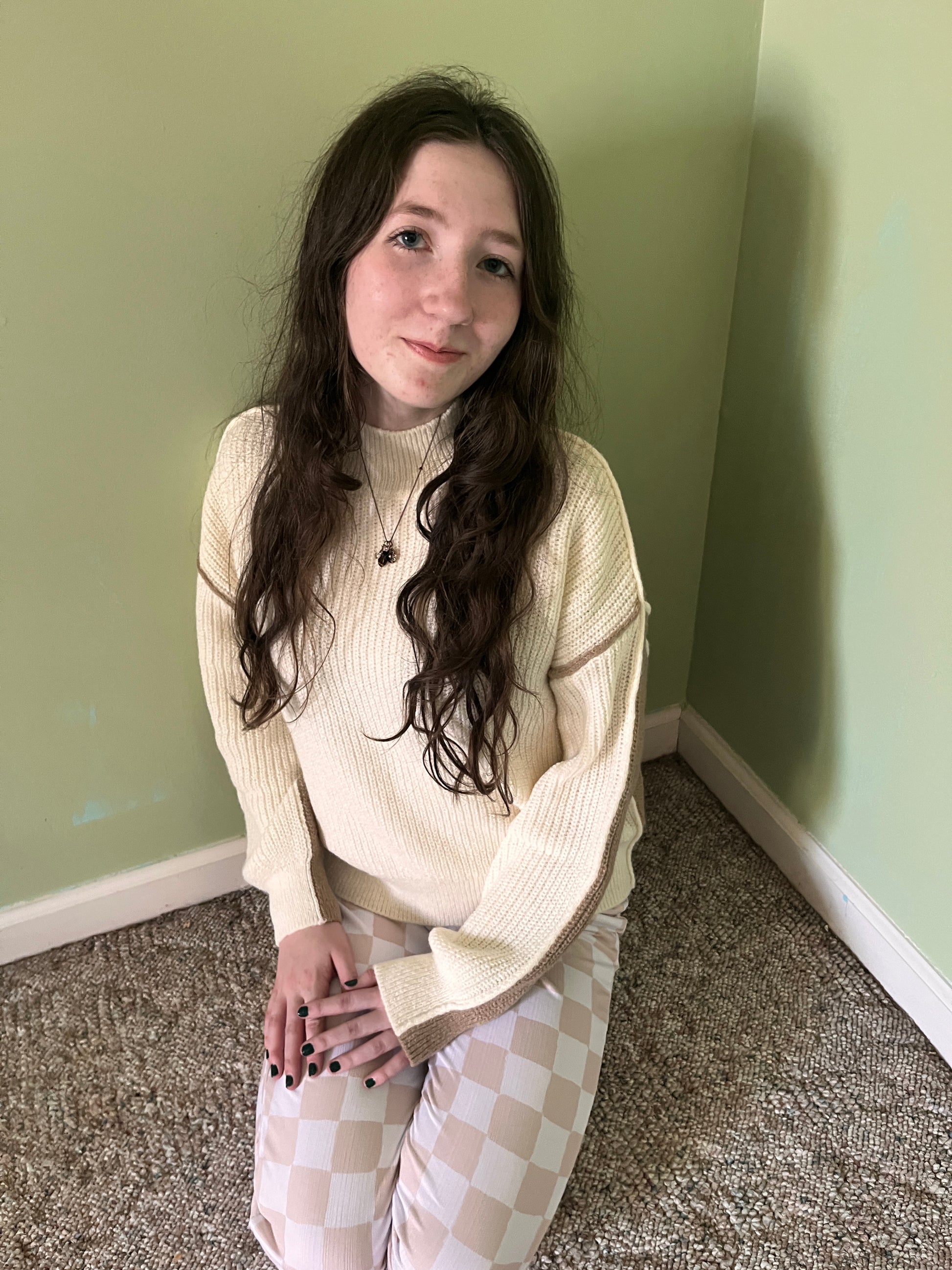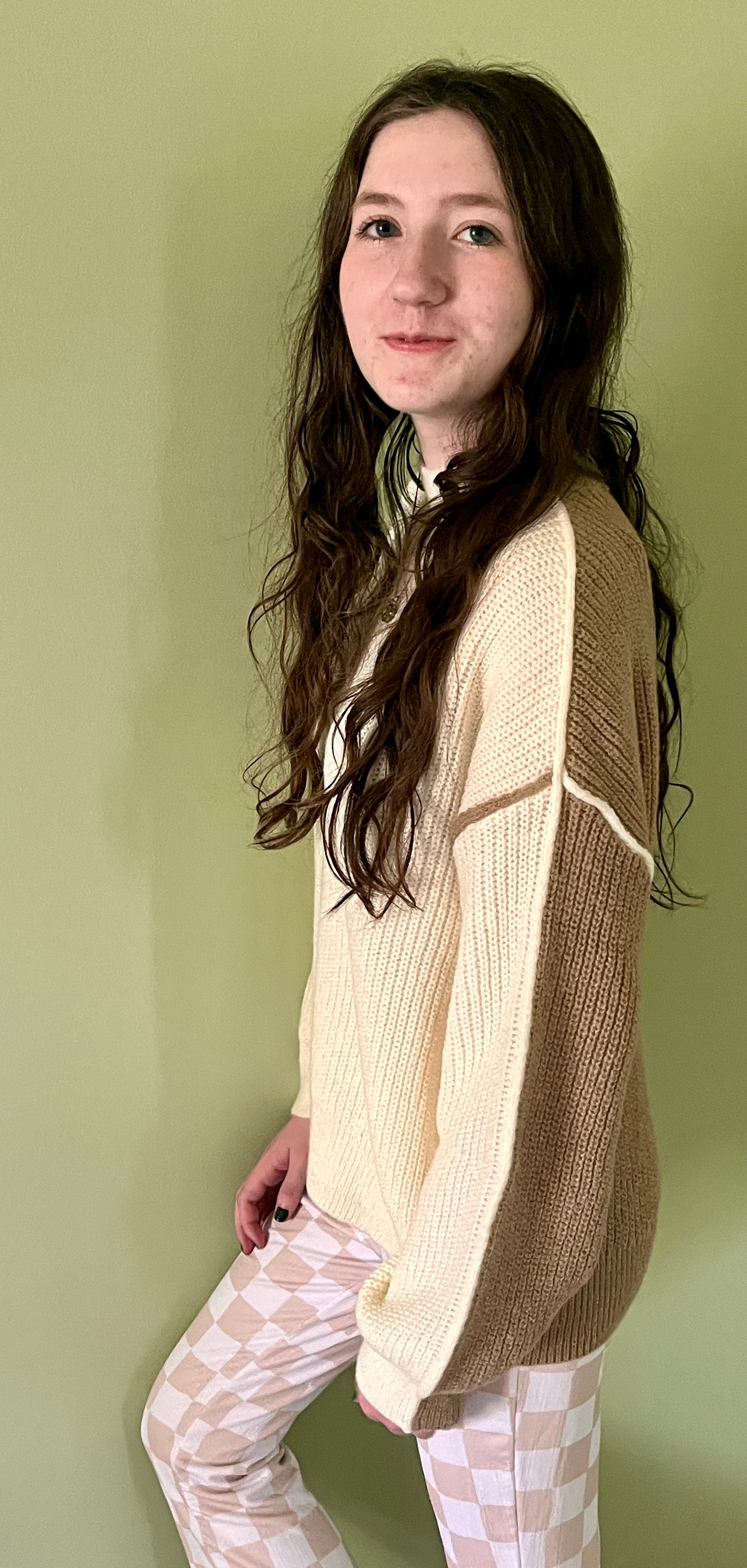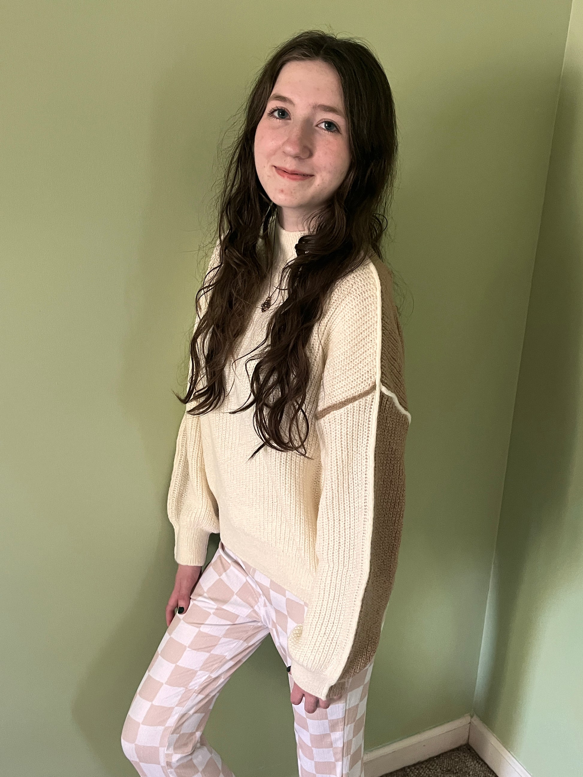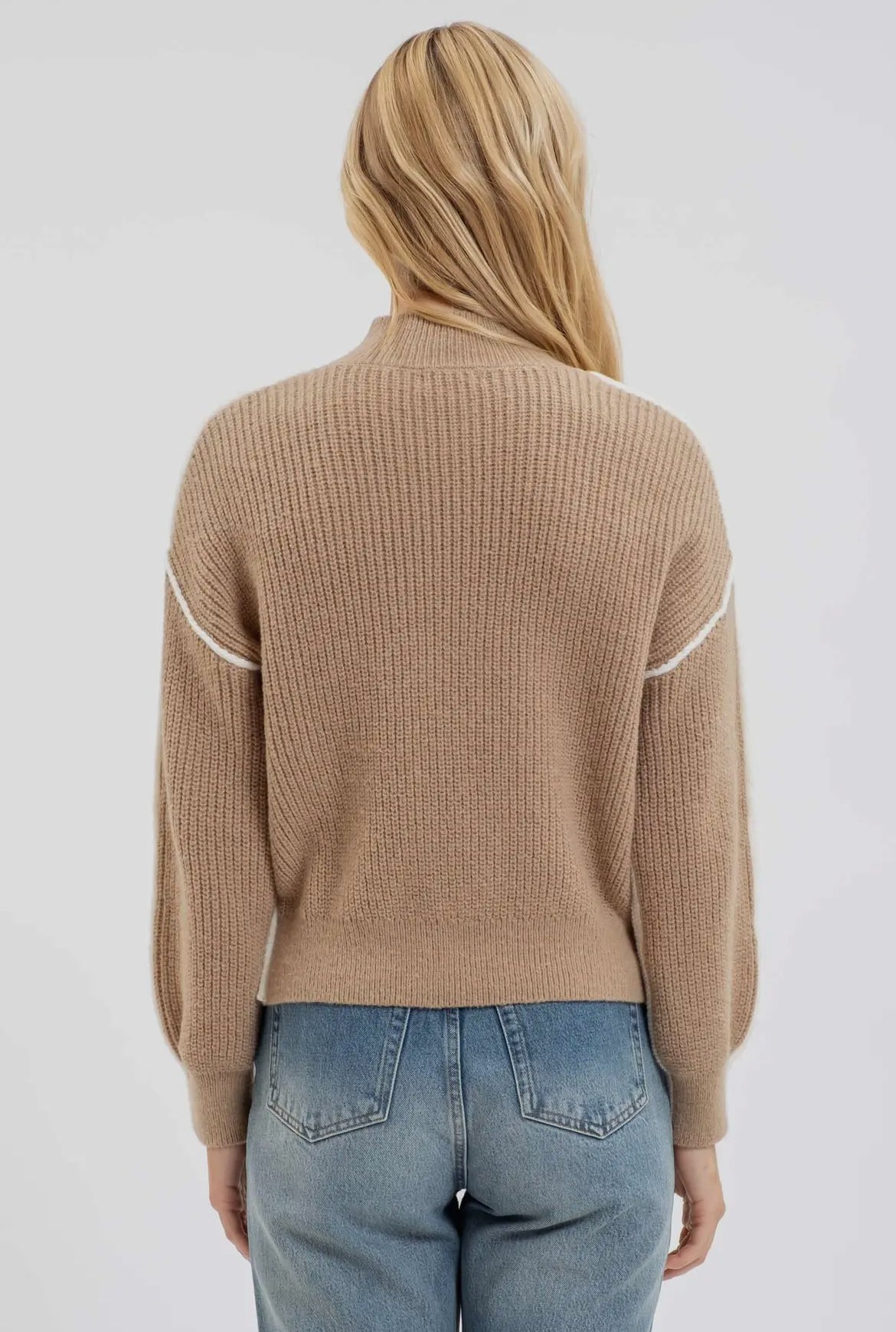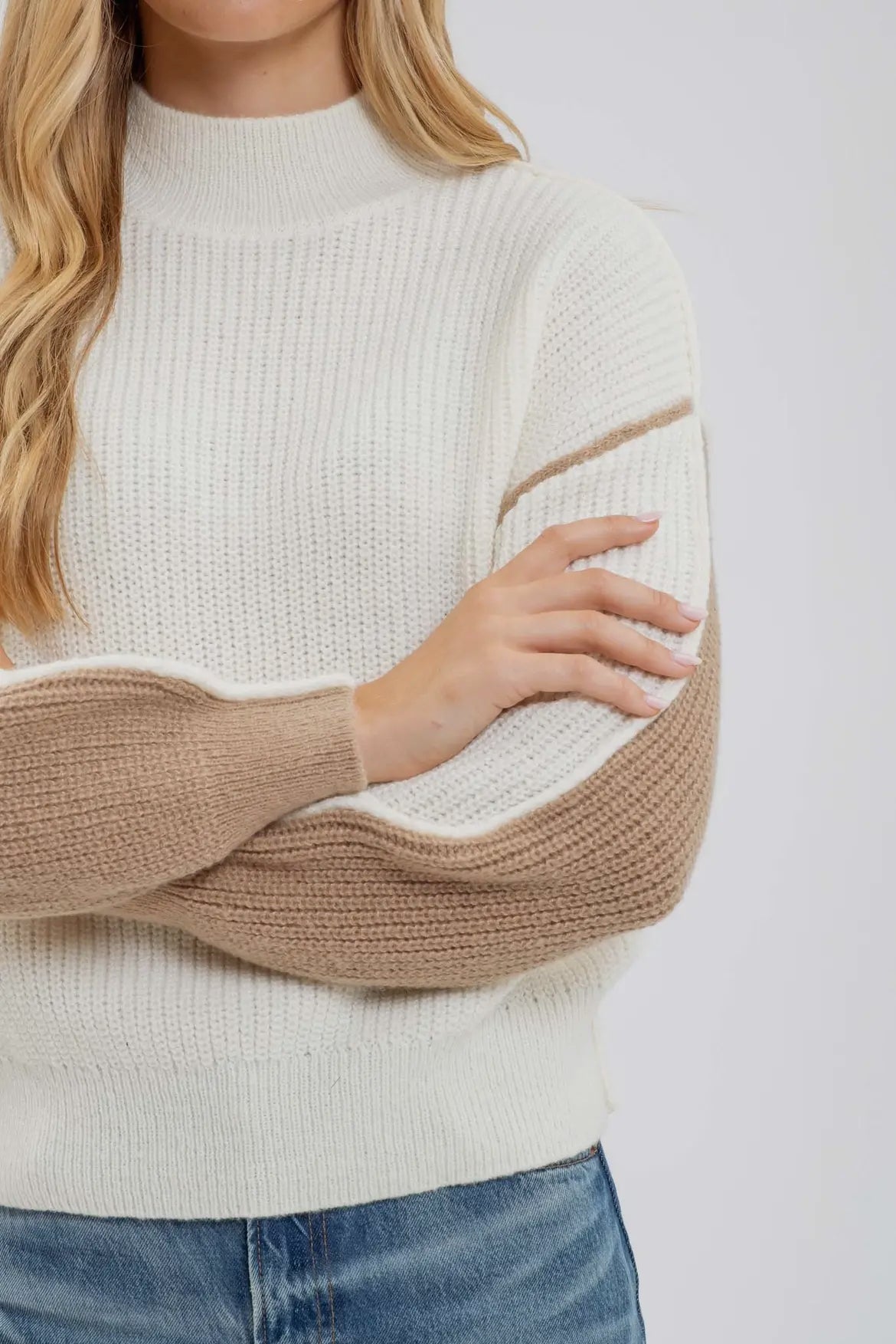 Colorblock Mock Neck Exposed Seam Knit Sweater IVORY