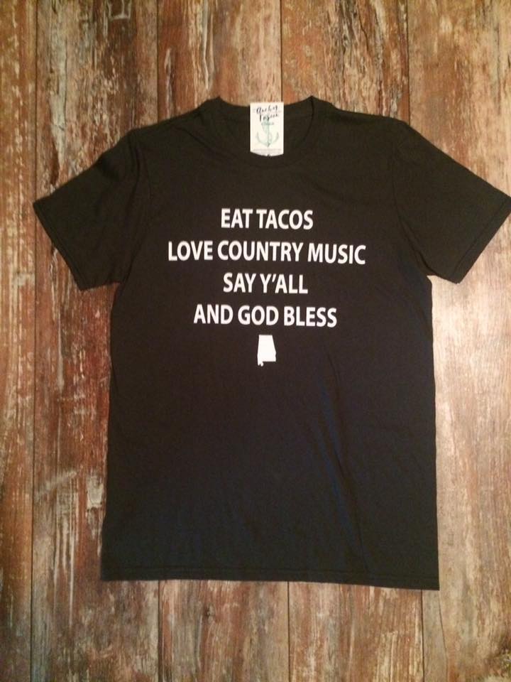 "Eat tacos, love country music, say y'all and God bless" Tee
