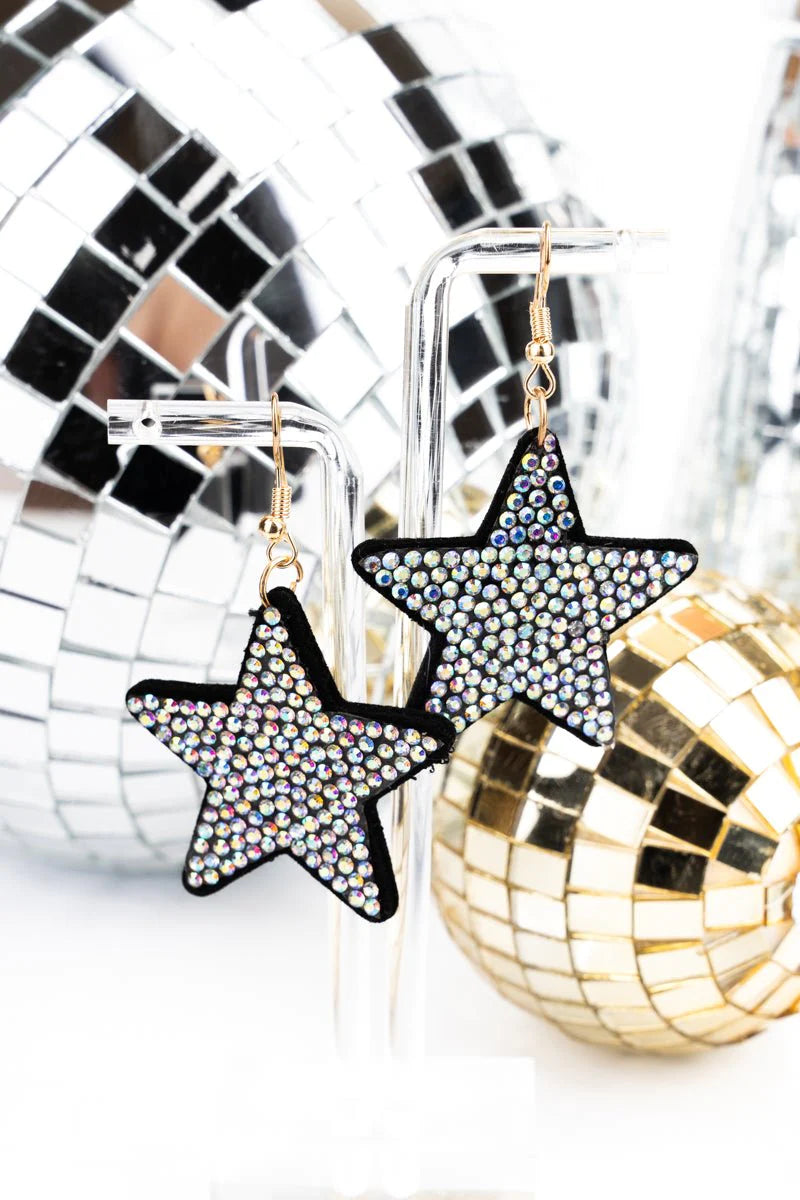 Upgrade your earring game with our ENCRUSTED BLACK STAR EARRINGS. The goldtone hardware and crystal accents add a chic touch to any outfit. Made with felt construction, they are both lightweight and lead & nickel compliant for comfortable wear. With 2.25" fish hook earrings and a 1.5" drop, they are the perfect combination of cute and stylish.
