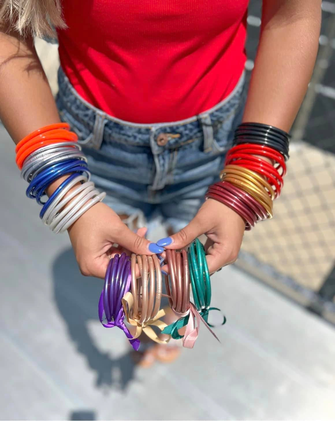Weather, sound, and waterproof. These are the perfect go to bracelet for everyday! From the office to the beach and all of your sporting events, these will be your go to accessory for every occasion! Each Set comes with 5 individual bracelets.
