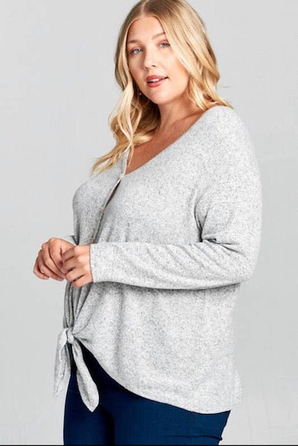 Curvy Gray Front Knot Top