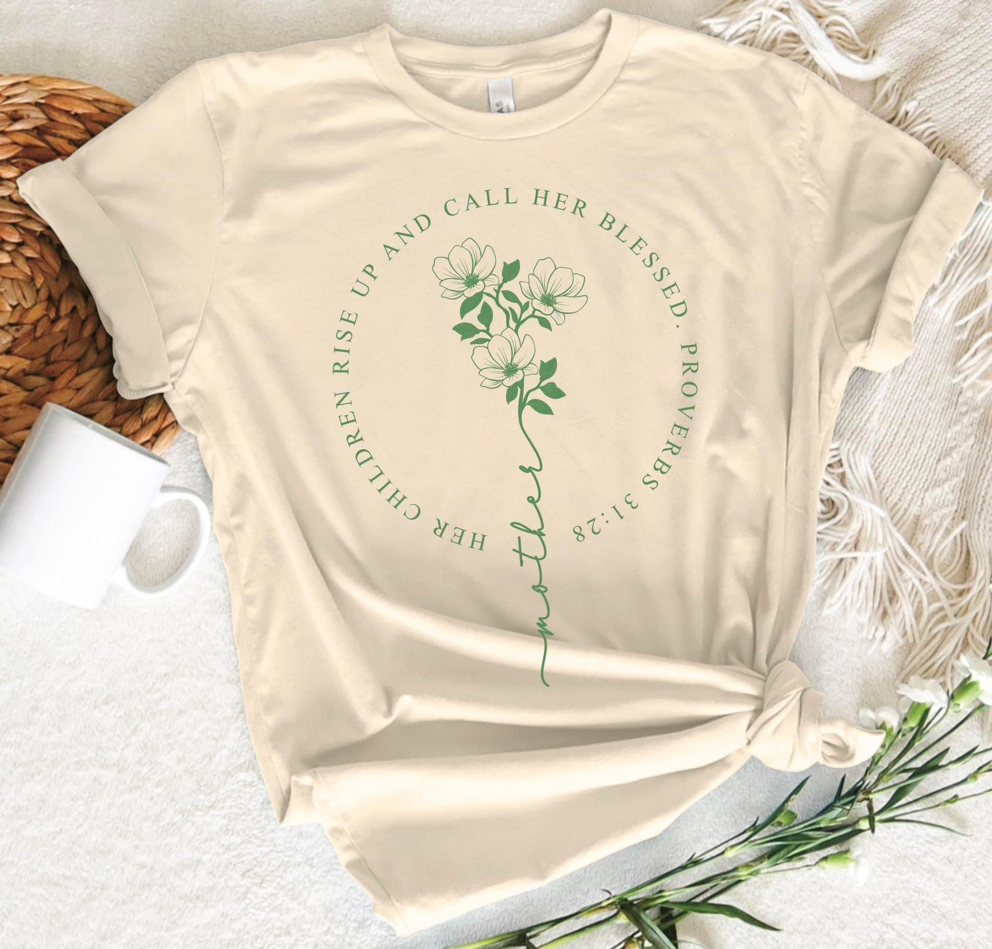 Celebrate the special bond between mother and children with our "Her Children Rise Up" tee. Made with soft fabric and printed with green ink, this shirt is a stylish and meaningful addition to any wardrobe. Show your appreciation for all the blessings a mother brings into our lives.