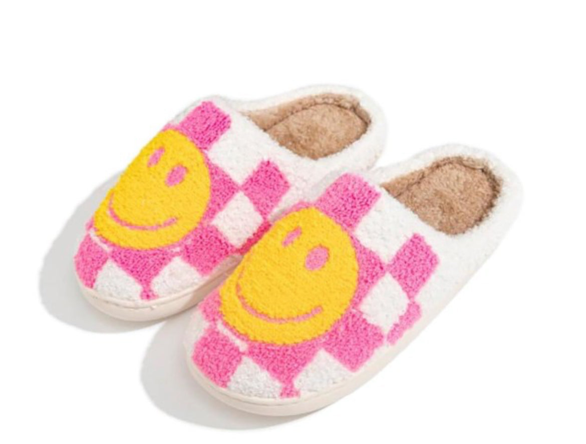 Hot Pink Happy Face Checker Slide On Slippers