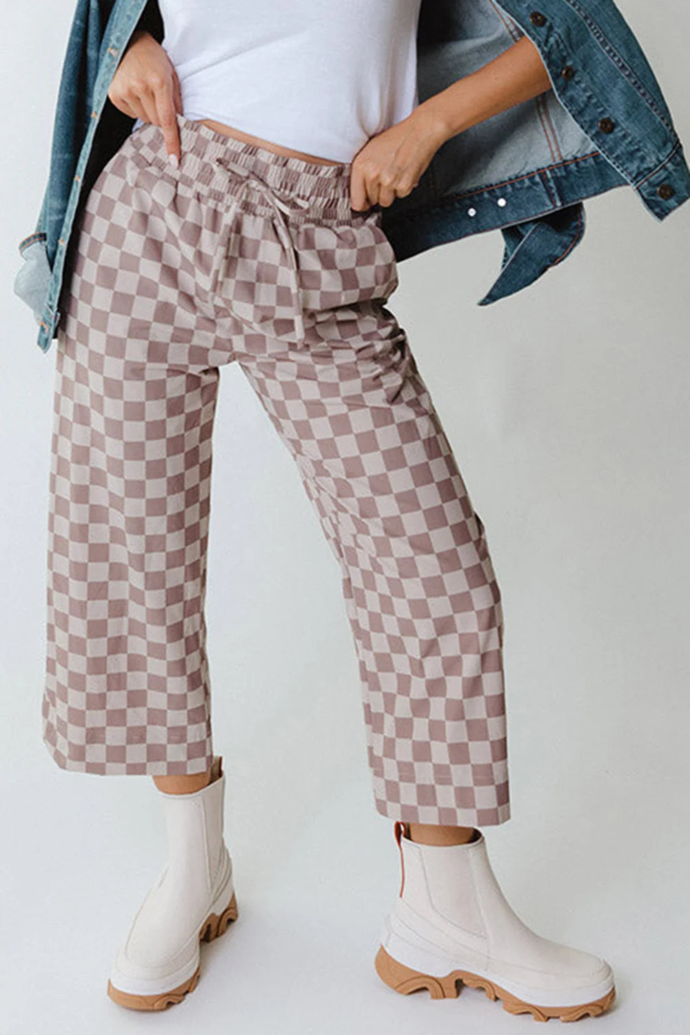 - Embrace a stylish and relaxed look with our checkered loose pants, perfect for both casual outings and lounging at home.