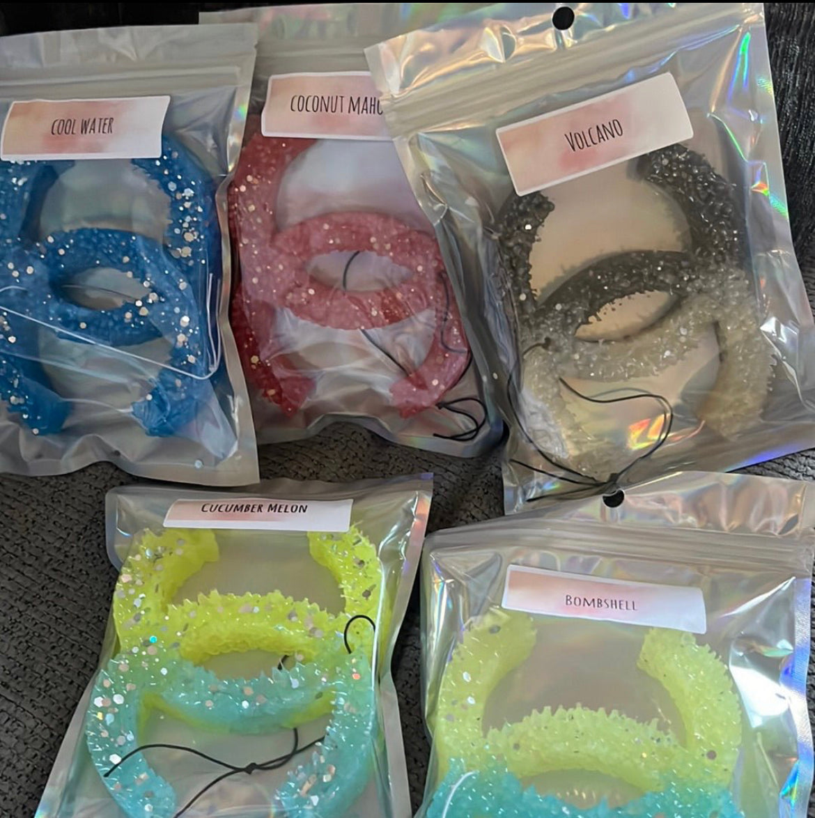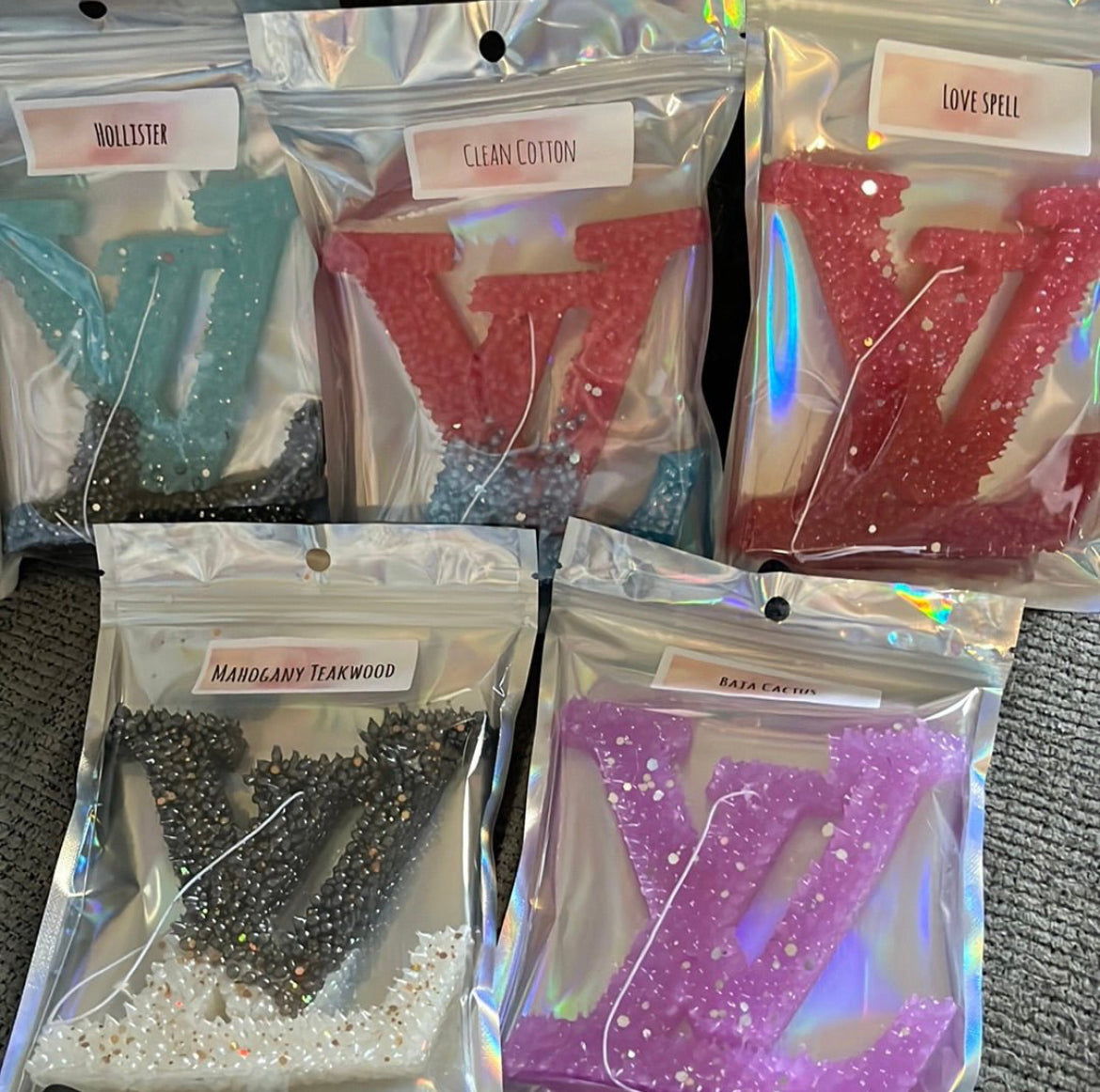 All freshies come bagged in an iridescent, resealable bag labeled with scent.
