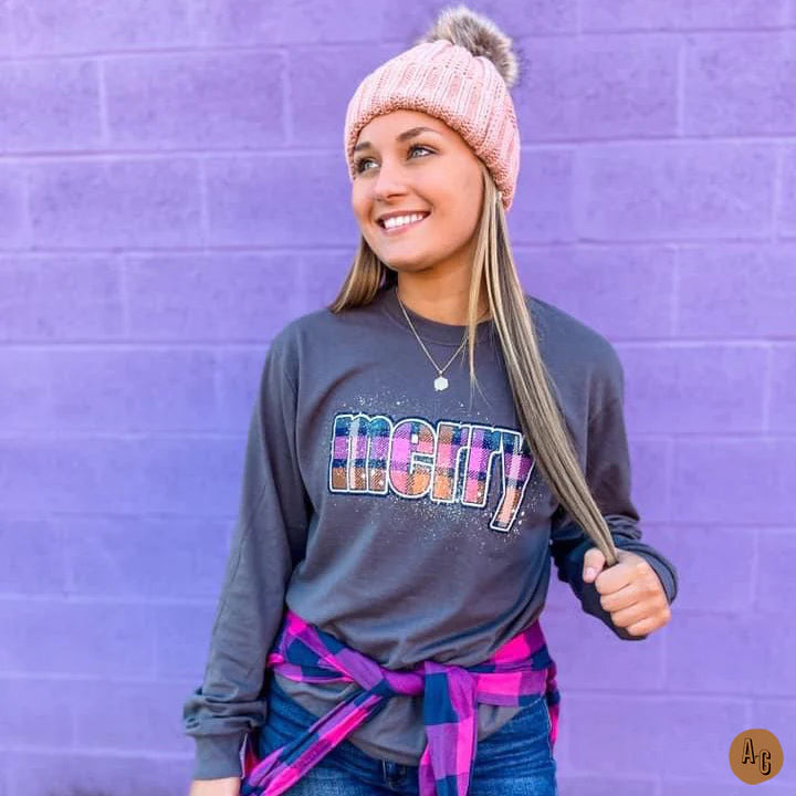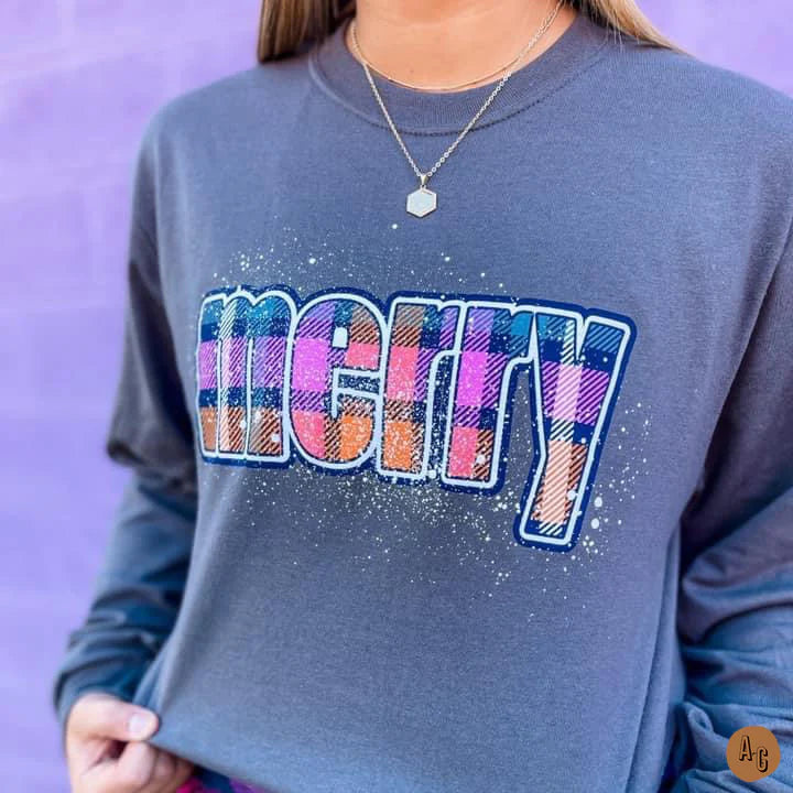 Merry Plaid Long Sleeve Tee