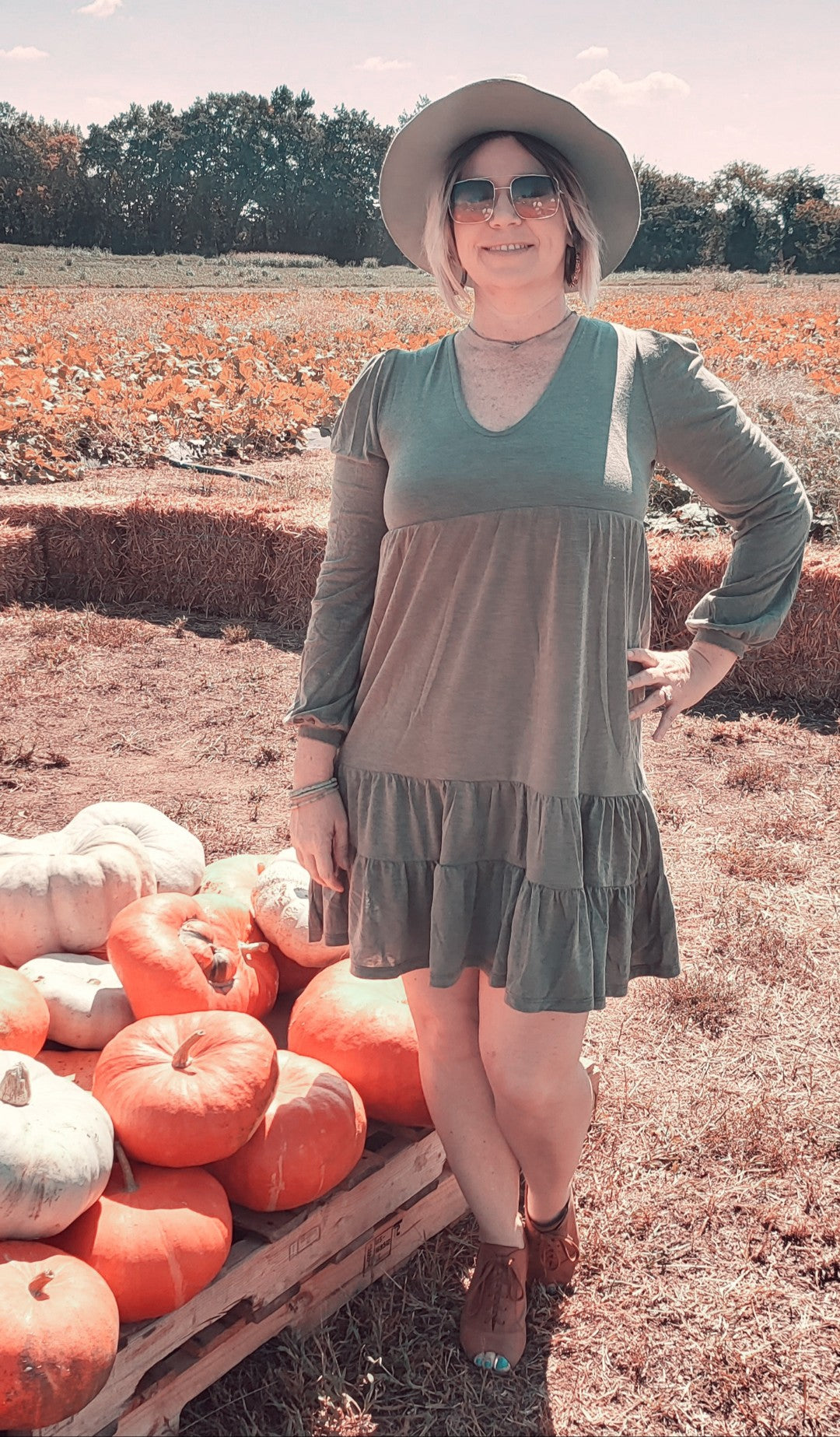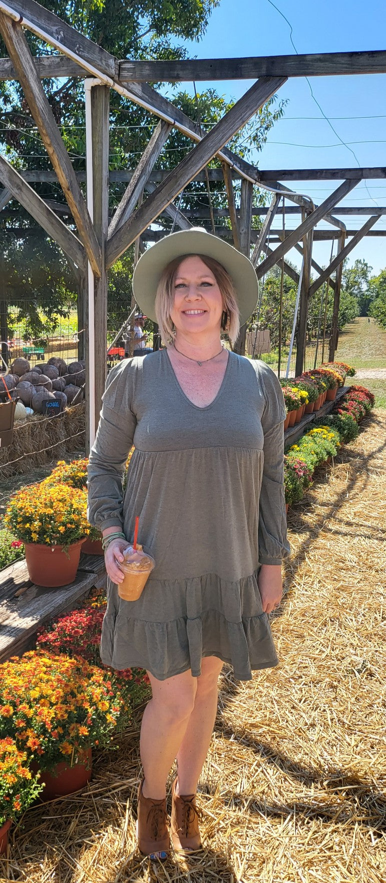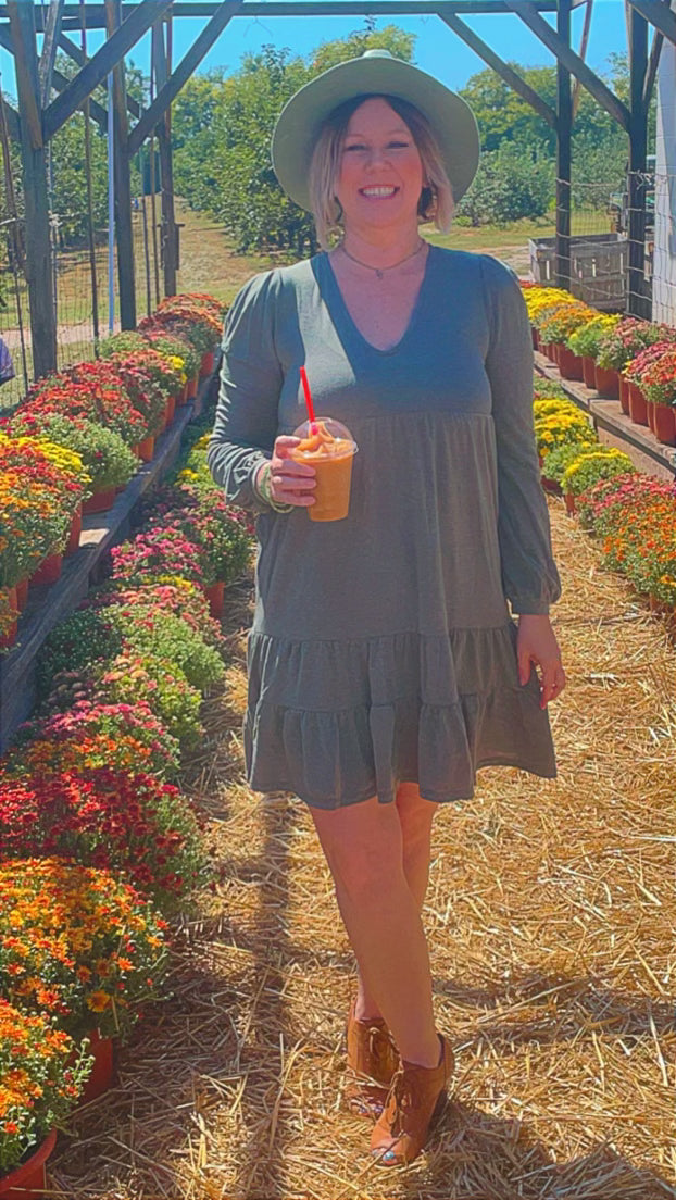 Olive Tiered Swing Dress
