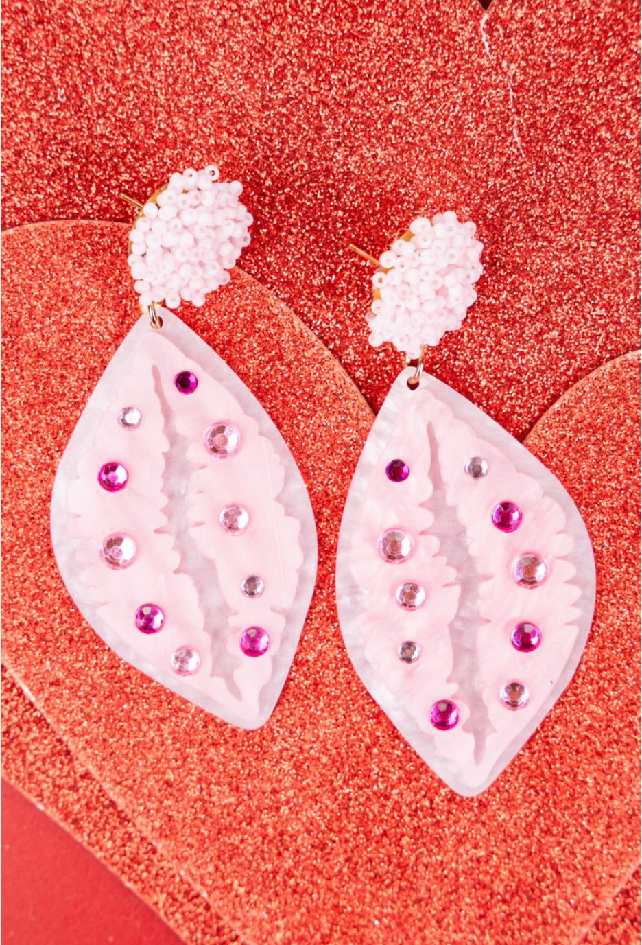 PINK KISS ACRYLIC AND SEED BEAD EARRINGS