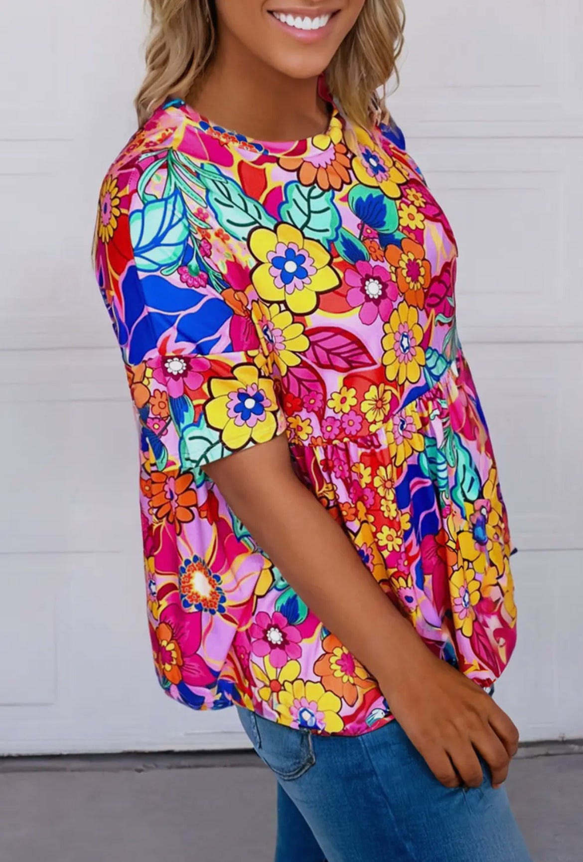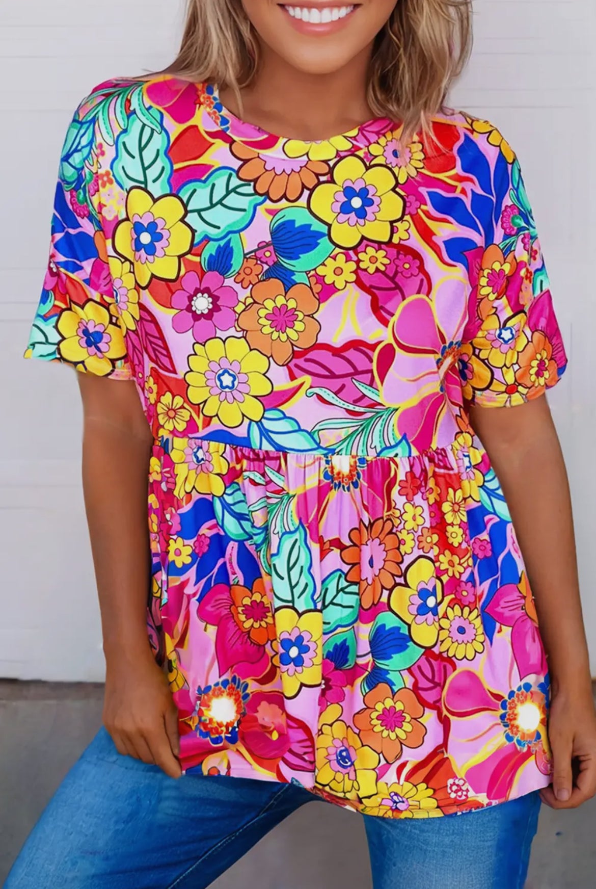 This abstract short sleeve floral babydoll top is the perfect addition to your wardrobe. Made with a comfortable polyester and spandex mix, this top offers some stretch for a flattering fit. Pair it with jeans and sandals for a stylish and effortless look.