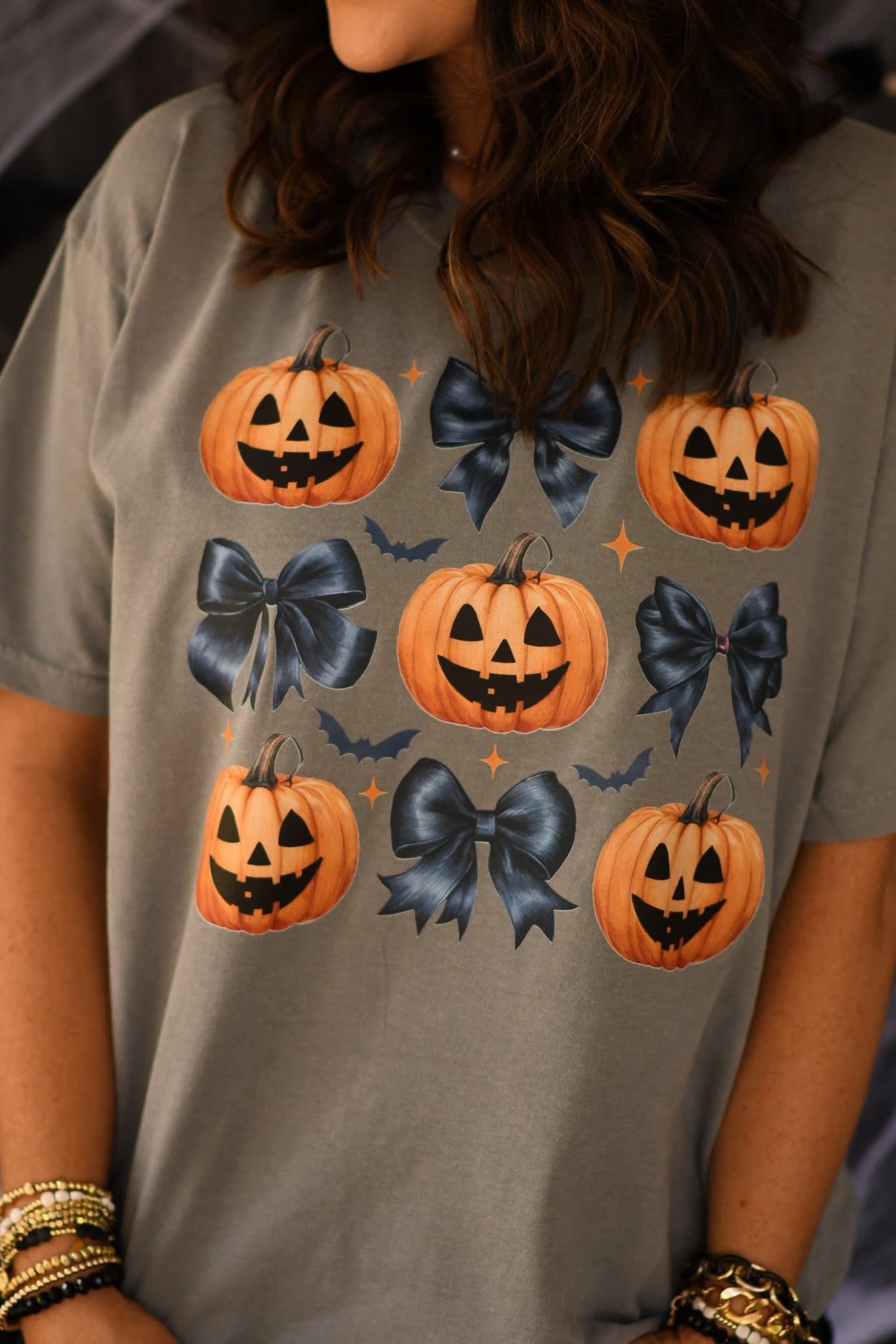 This Pumpkins & Bows Tee offers a perfect blend of seasonal charm and comfort. The grey comfort colors tee is adorned with charming pumpkins and bows, creating a festive and stylish look. Made with high-quality materials, this tee ensures both comfort and durability for everyday wear. Perfect for any fall occasion!