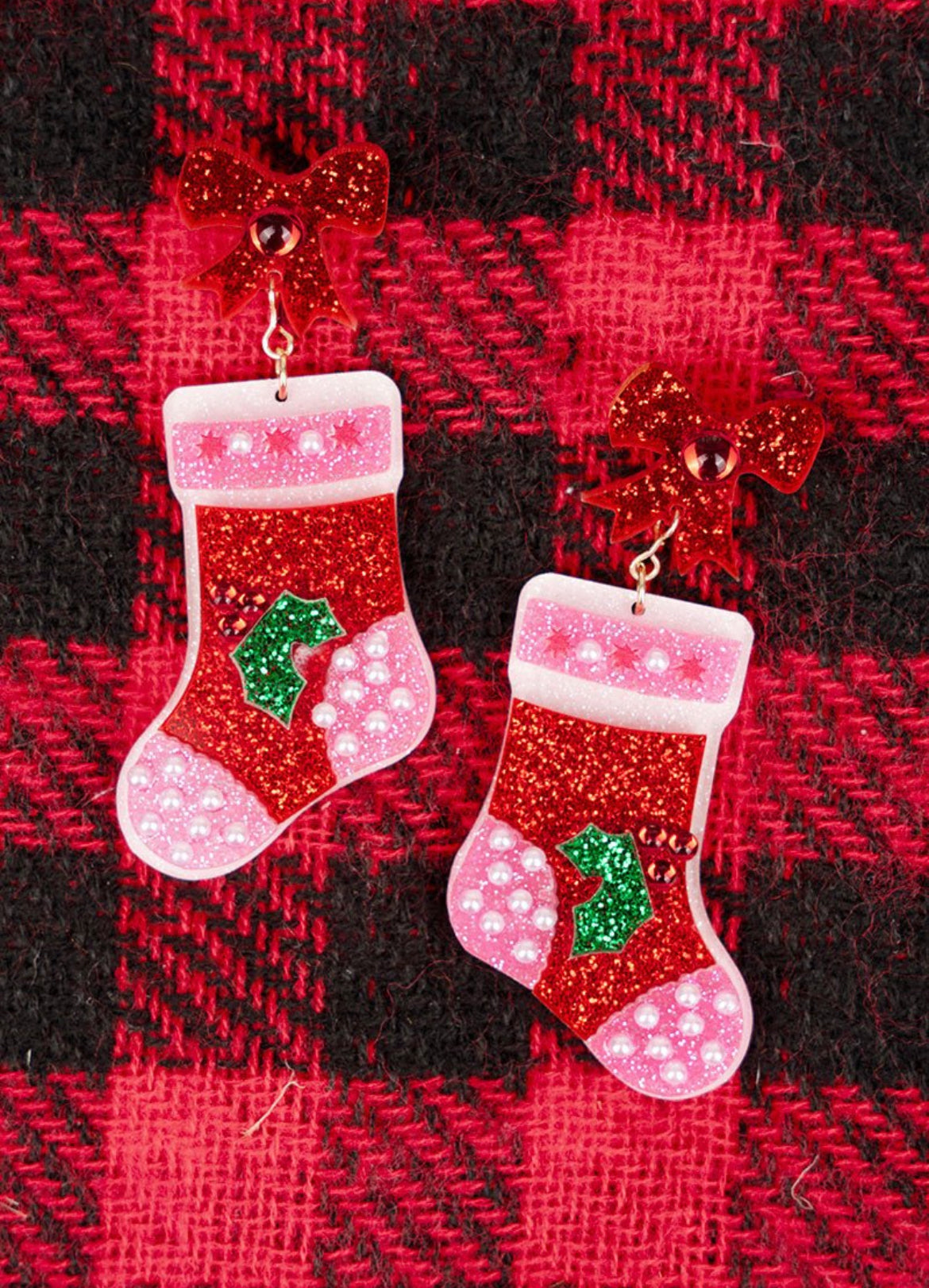 RED AND PINK STOCKING ACRYLIC EARRINGS