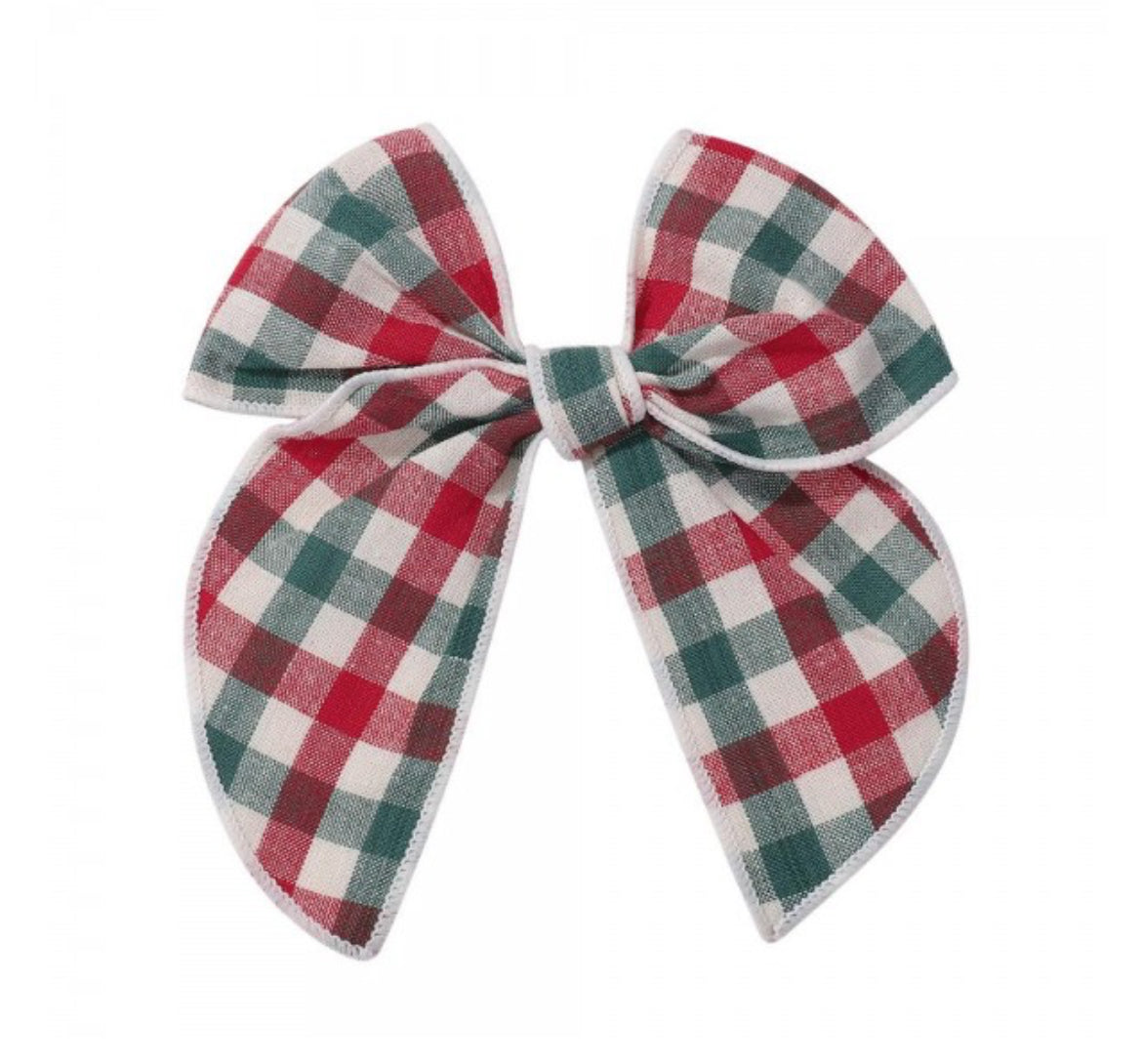 Red/Green/White Plaid Hair Bow