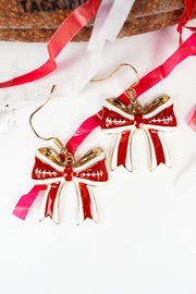 These stylish Red & White Football Bow Earrings are not only a trendy addition to your outfit, but they are also lead and nickel compliant, ensuring your safety and comfort. Perfect for any football fan, show off your team spirit with these unique earrings.