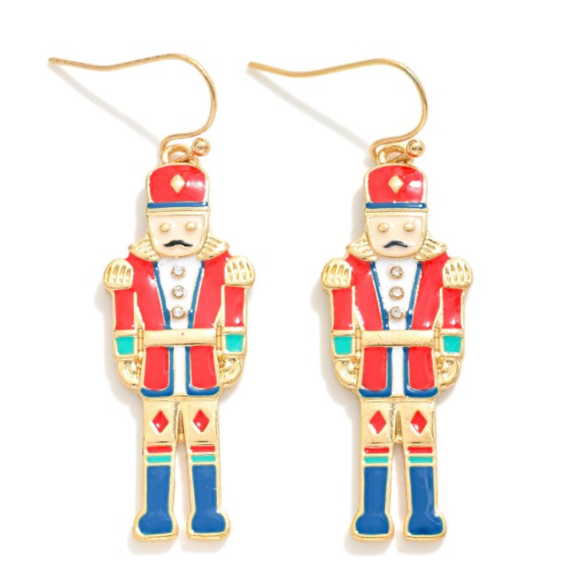 As an industry expert, I present to you Son of a Nutcracker Earrings. These earrings feature painted metal nutcracker drops, measuring approximately 1.5" in length. Add a touch of festive flair to your outfit with these unique and charming earrings.
